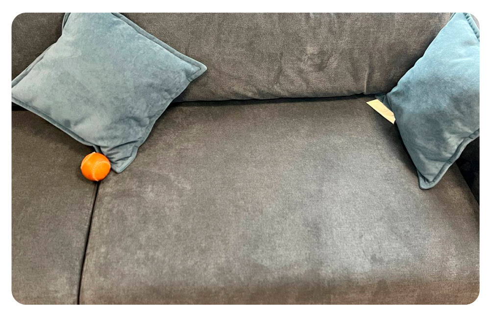 Диван свежий — днем ранее его чистили ручным пылесосом. Покупатель отметил, что семья несколько раз в неделю проводит влажную уборку пола.