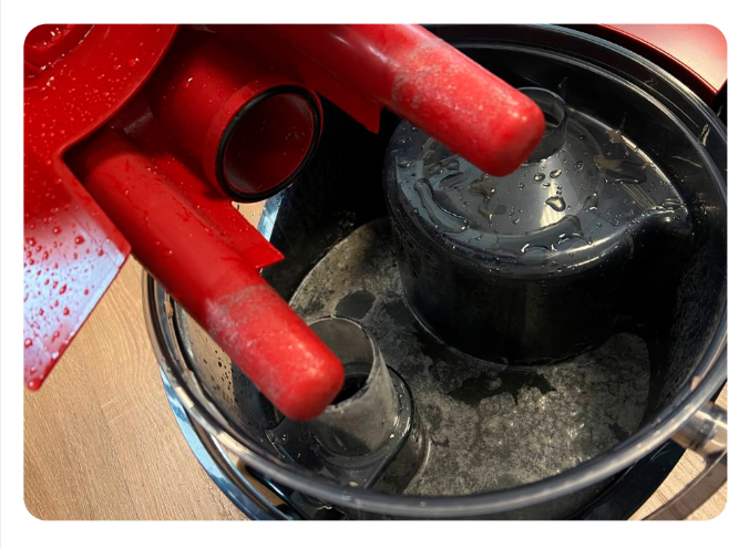 И хотя до уборки диван выглядел чистым, в аквафильтре Дмитрий обнаружил густую взвесь пыли. Источник аллергических реакций найден!